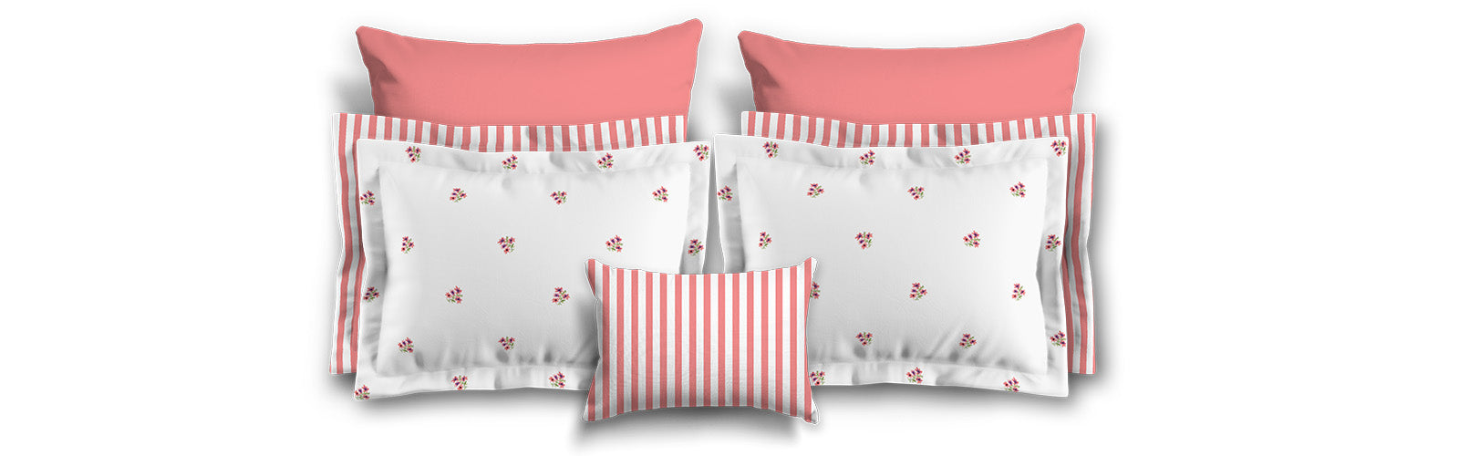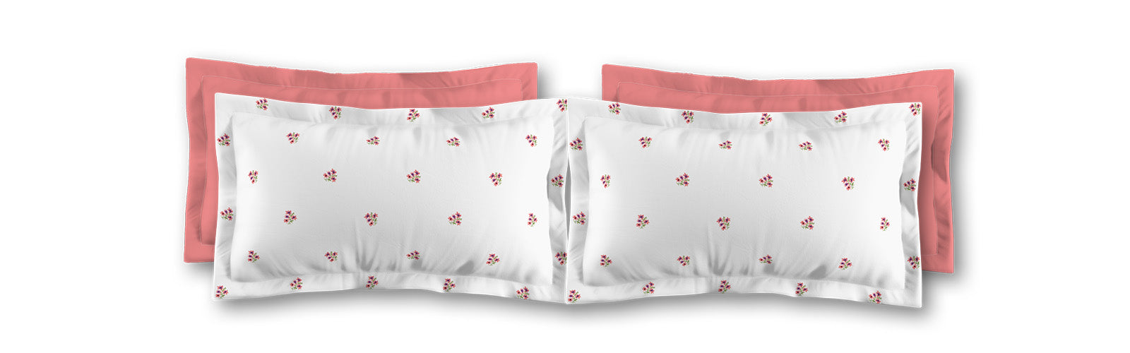 White Microfiber Pillow Sham with Flange, Small Pink Floral Pattern | MFSF-1346