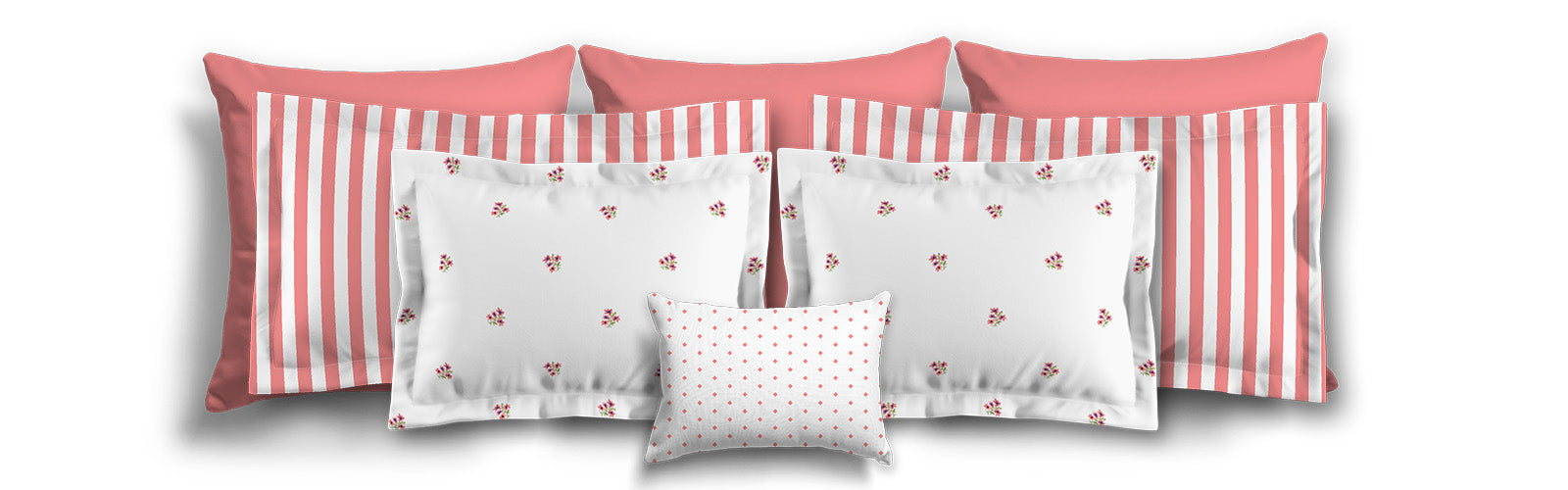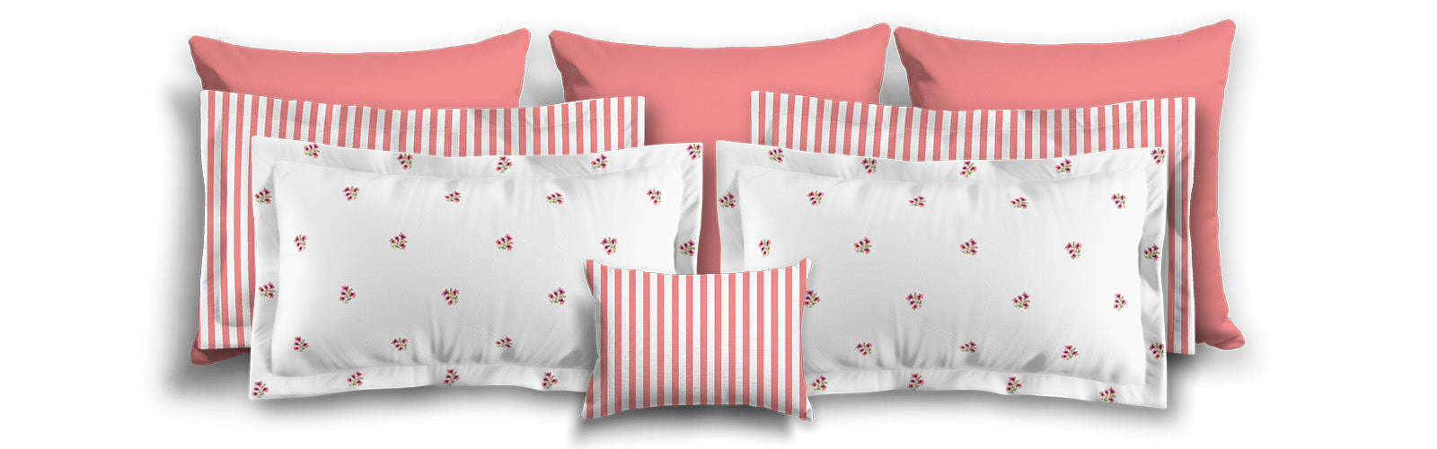 White Microfiber Sham with Flange, Pink Stripes on Front, White Reverse Side | MFSF-1340-151