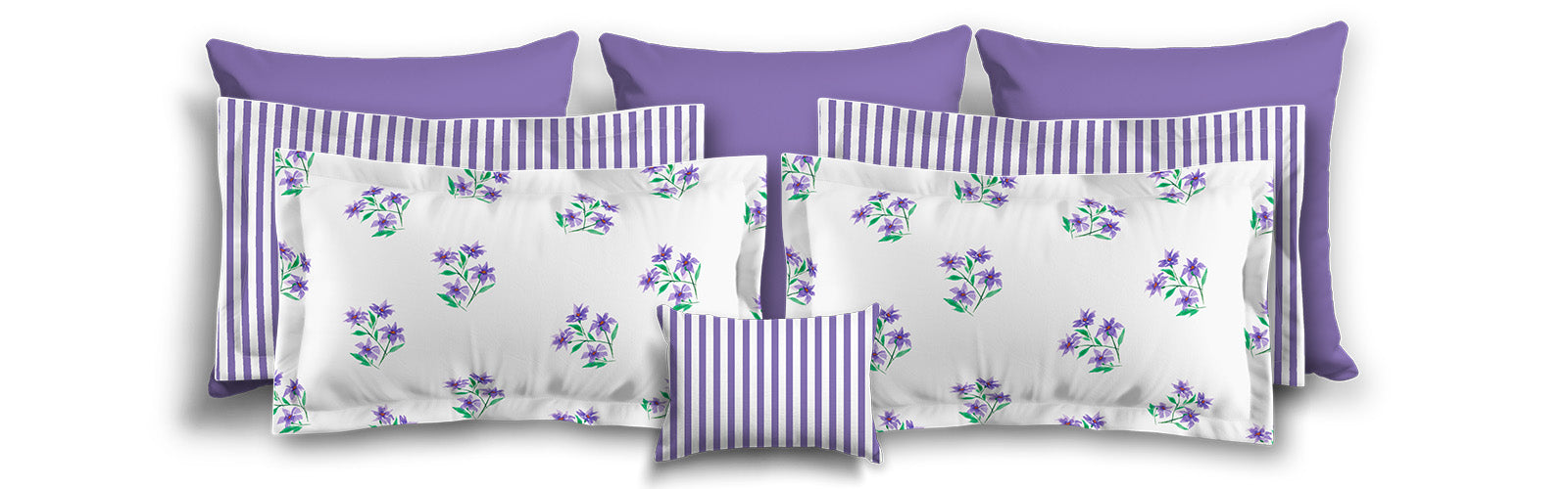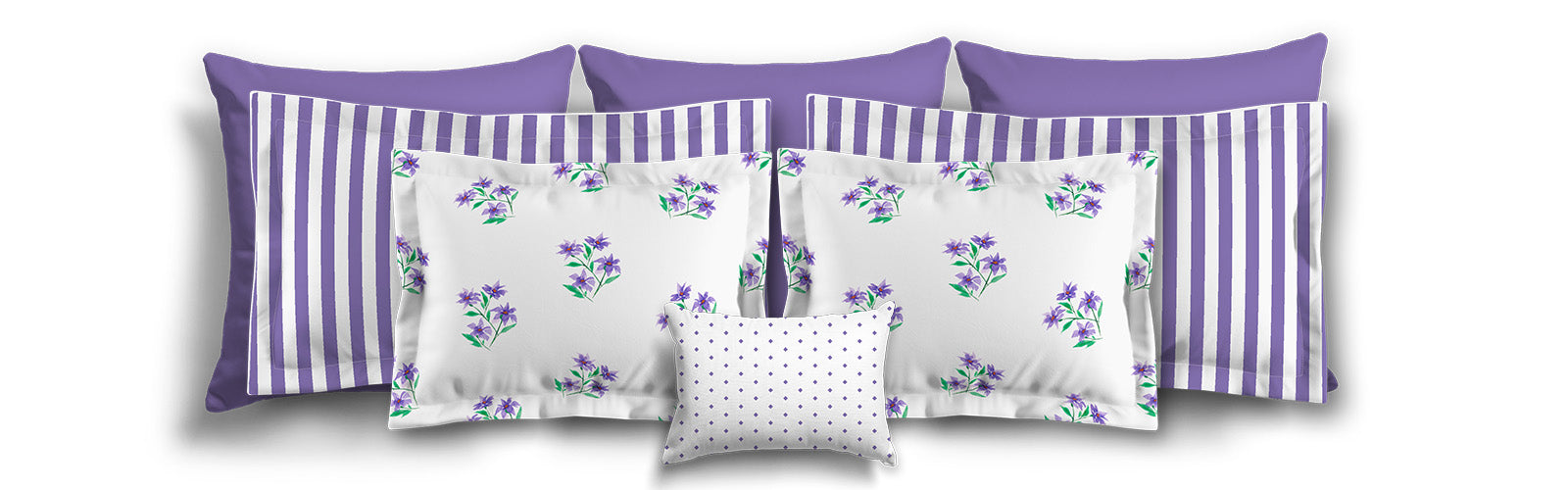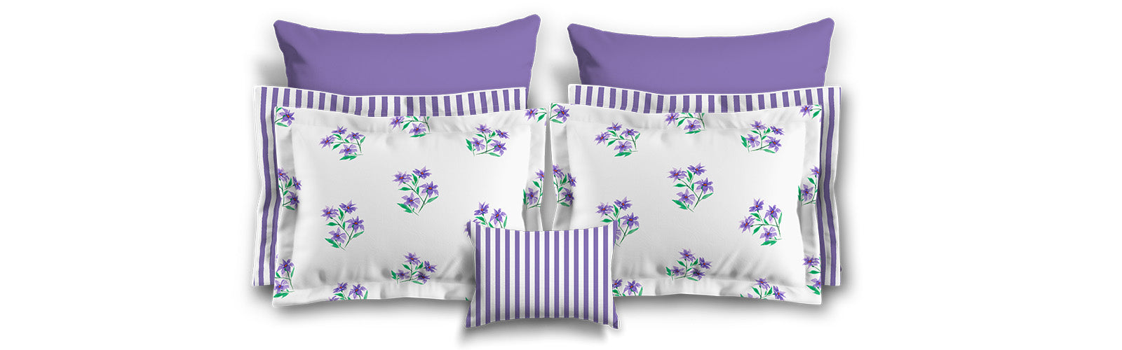 White Microfiber Sham with Flange, Purple Stripes on Front, White Reverse Side | MFSF-1350-151