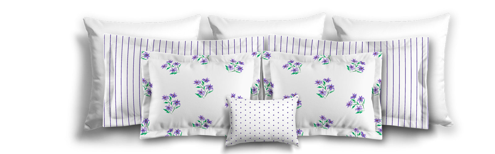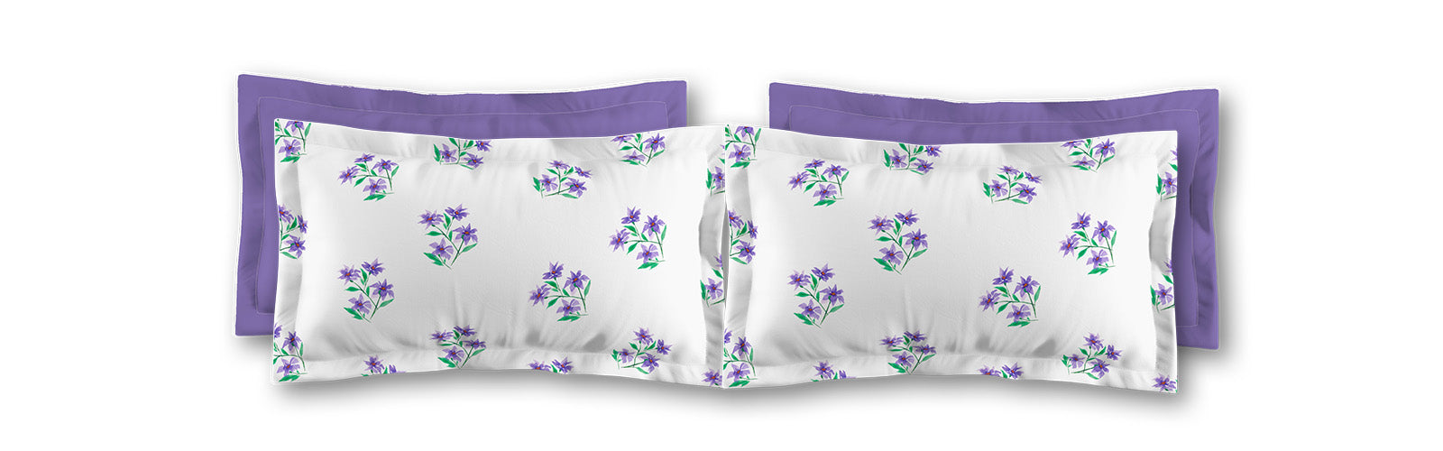 White Microfiber Pillow Sham with Flange, Medium Purple Floral Pattern | MFSF-1355