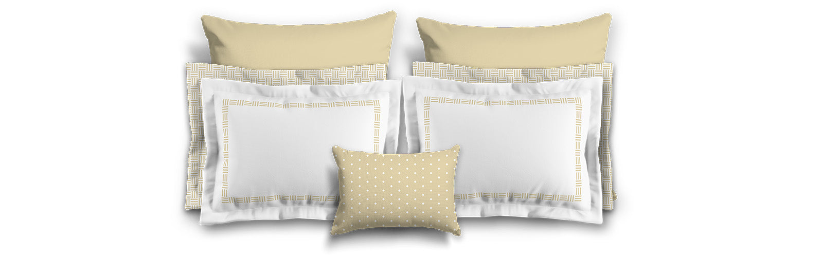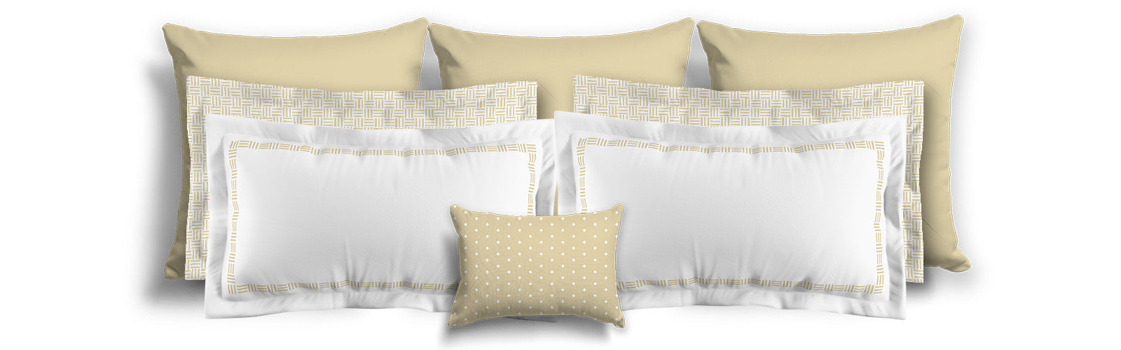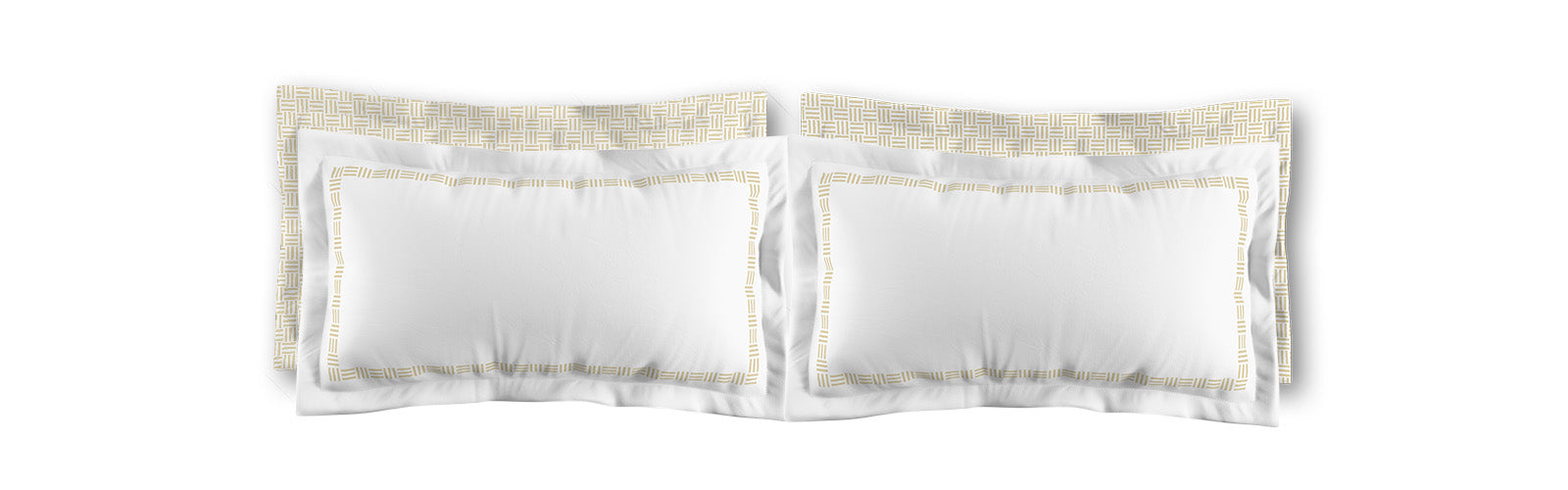 White Microfiber Pillow Sham with Flange, Tan Single Weave Motif Print, White Reverse Side | MFSF-1371-142