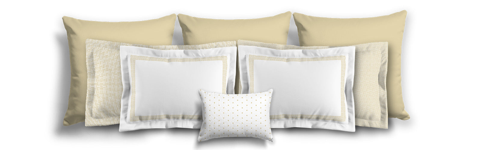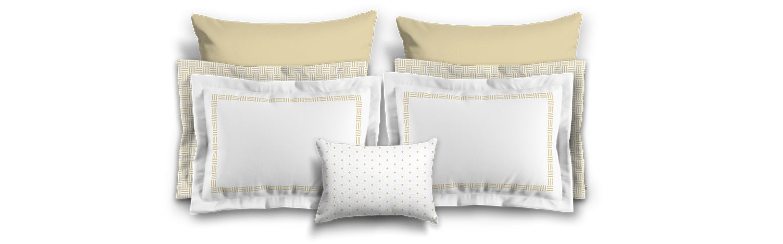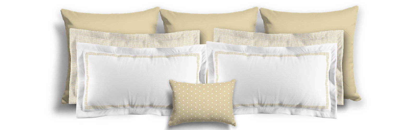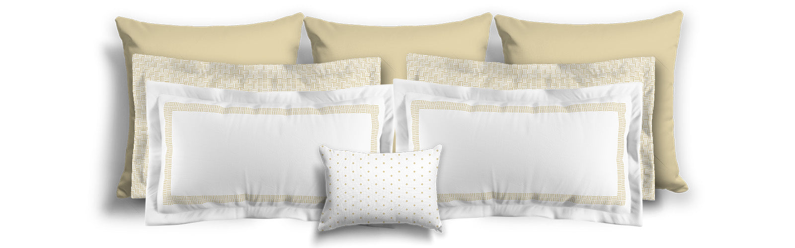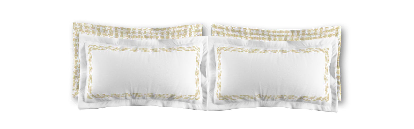 White Microfiber Pillow Sham with Flange, Tan Double Weave Motif Print, White Reverse Side | MFSF-1371-144