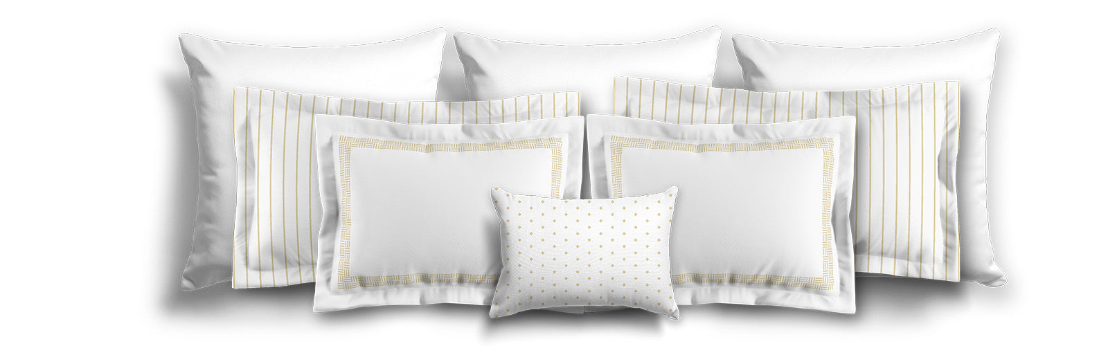 White Microfiber Sham with Flange, Tan Stripes on Front, White Reverse Side | MFSF-1371-151