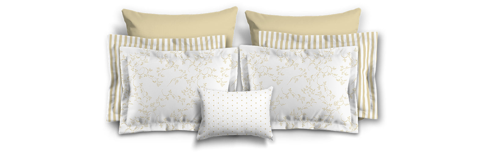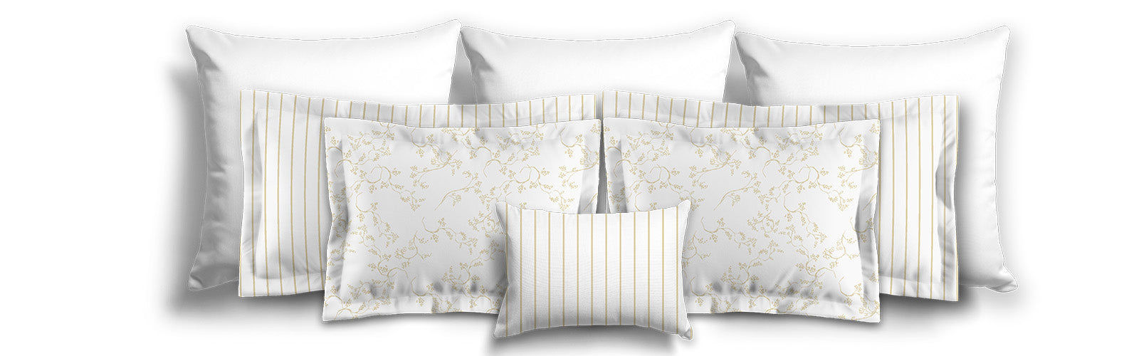 White Microfiber Sham with Flange, Tan Stripes on Front, White Reverse Side | MFSF-1371-151