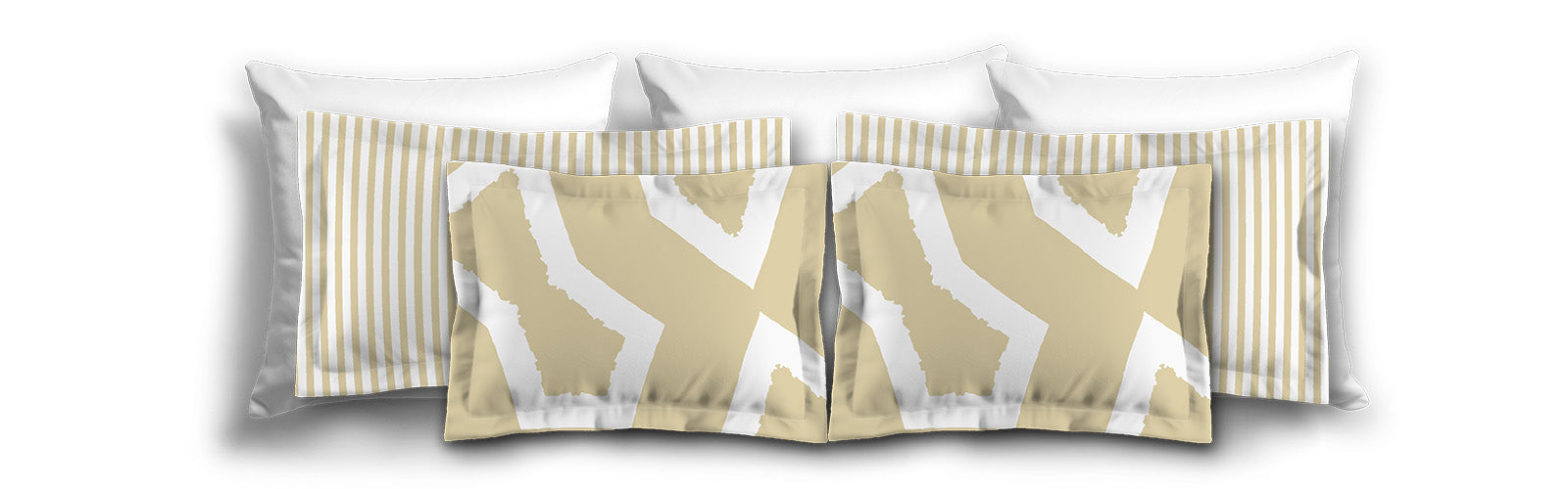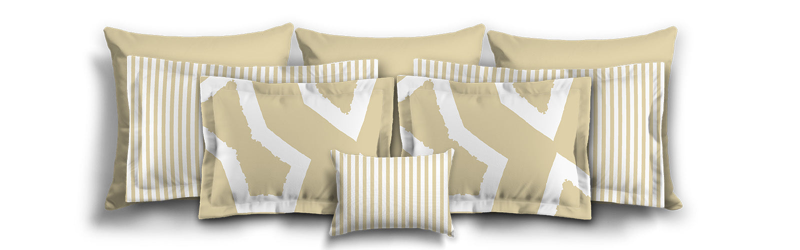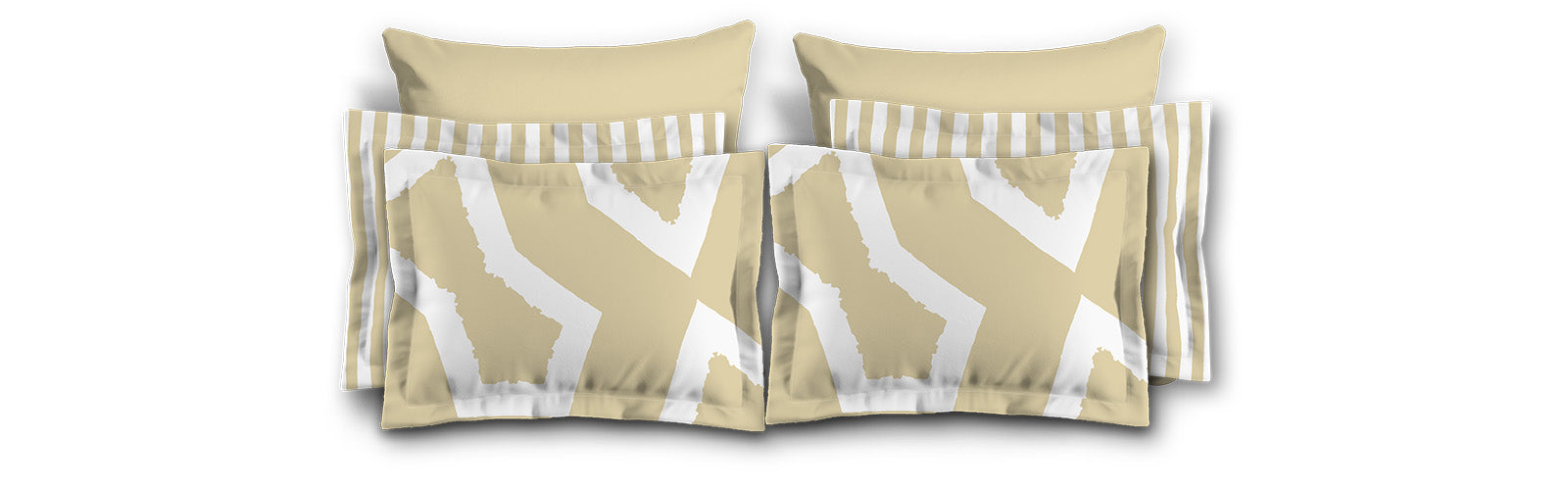 White Microfiber Sham with Flange, Tan Stripes on Front, White Reverse Side | MFSF-1371-151