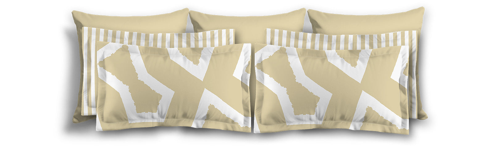White Microfiber Sham with Flange, Tan Bars on Front, White Reverse Side | MFSF-1371-051