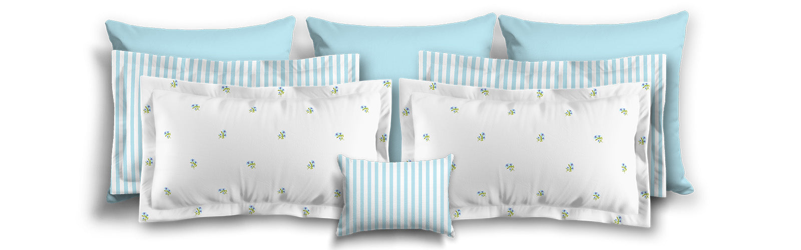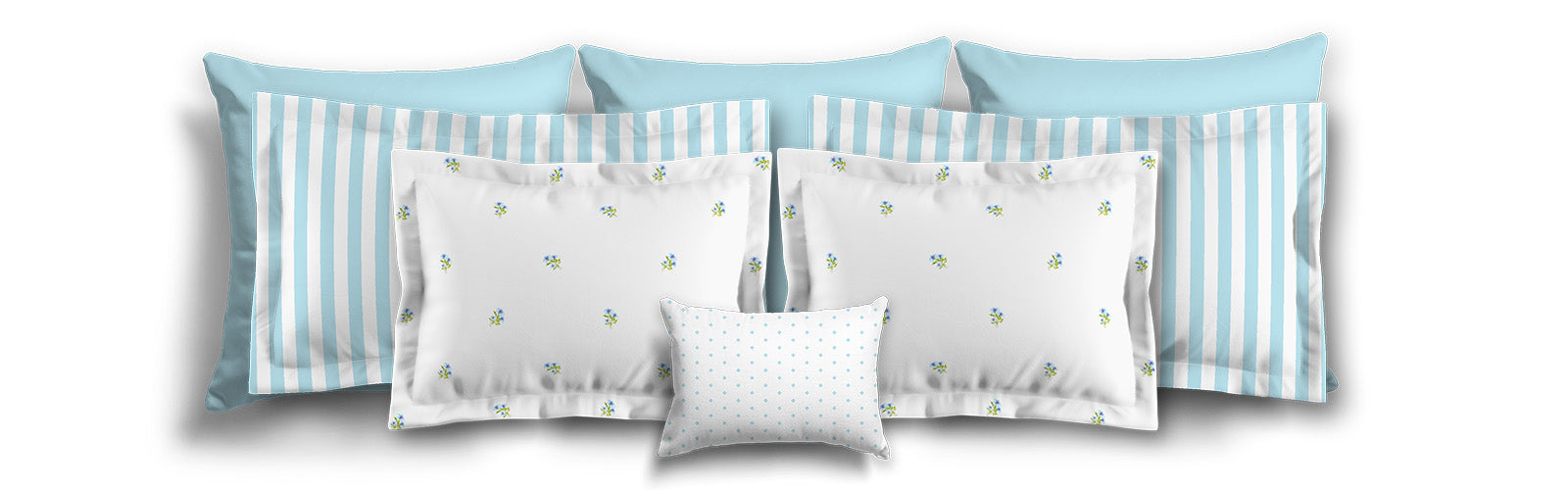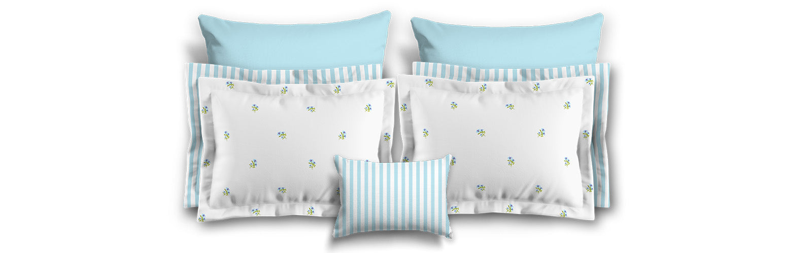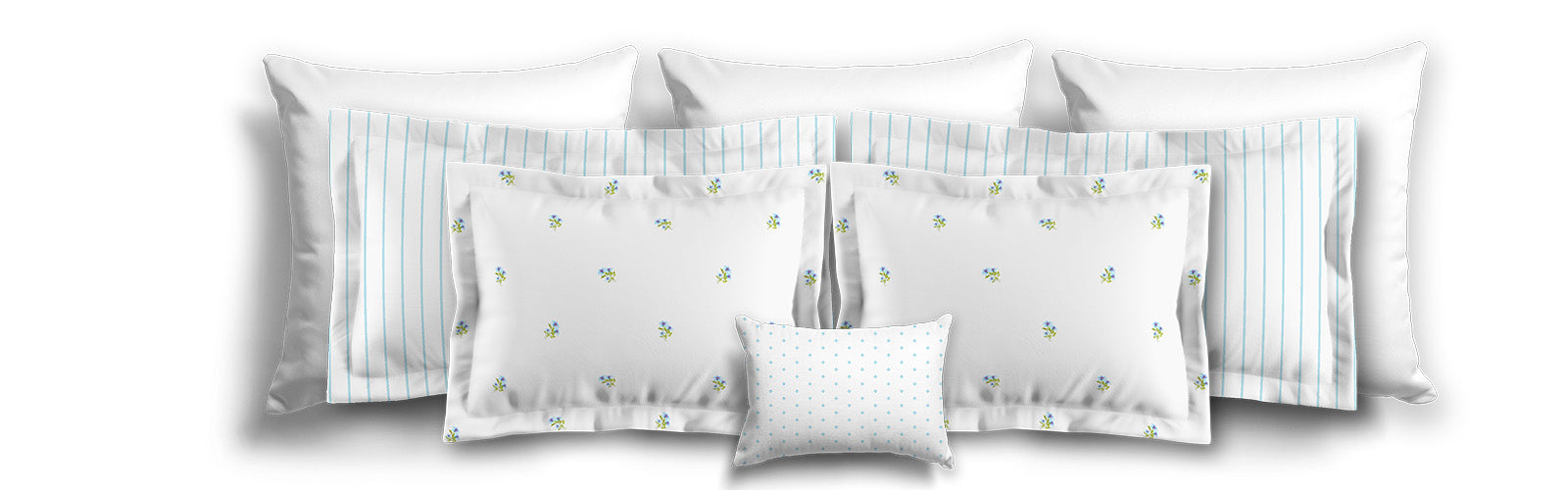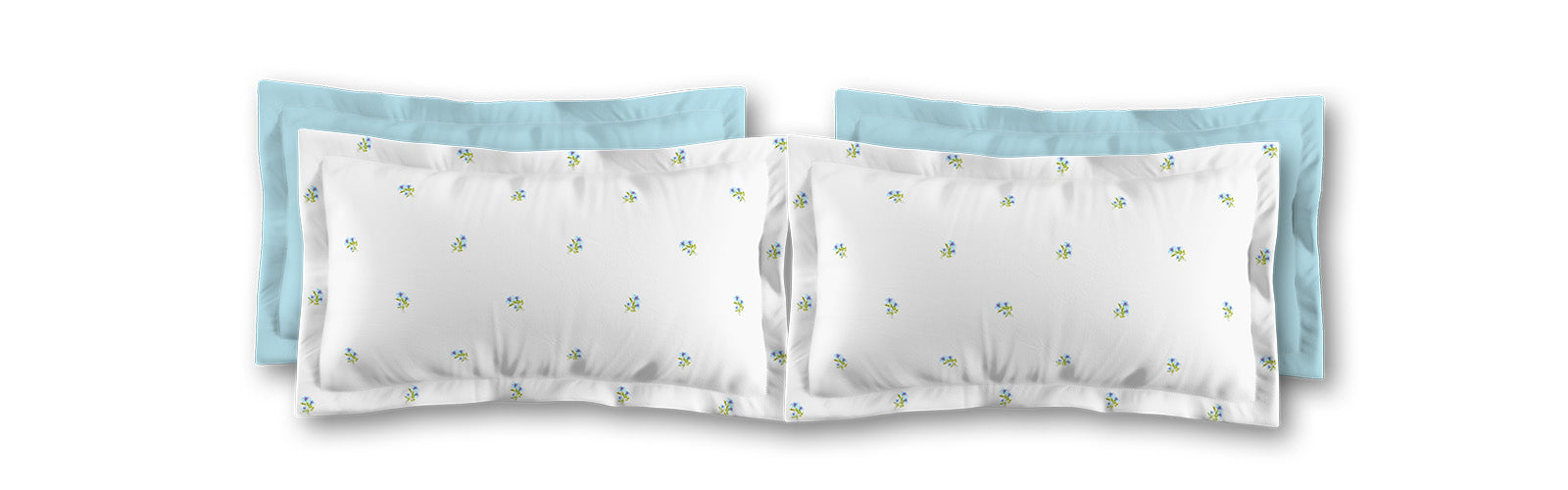 White Microfiber Pillow Sham with Flange, Small Blue Floral Pattern | MFSF-1376