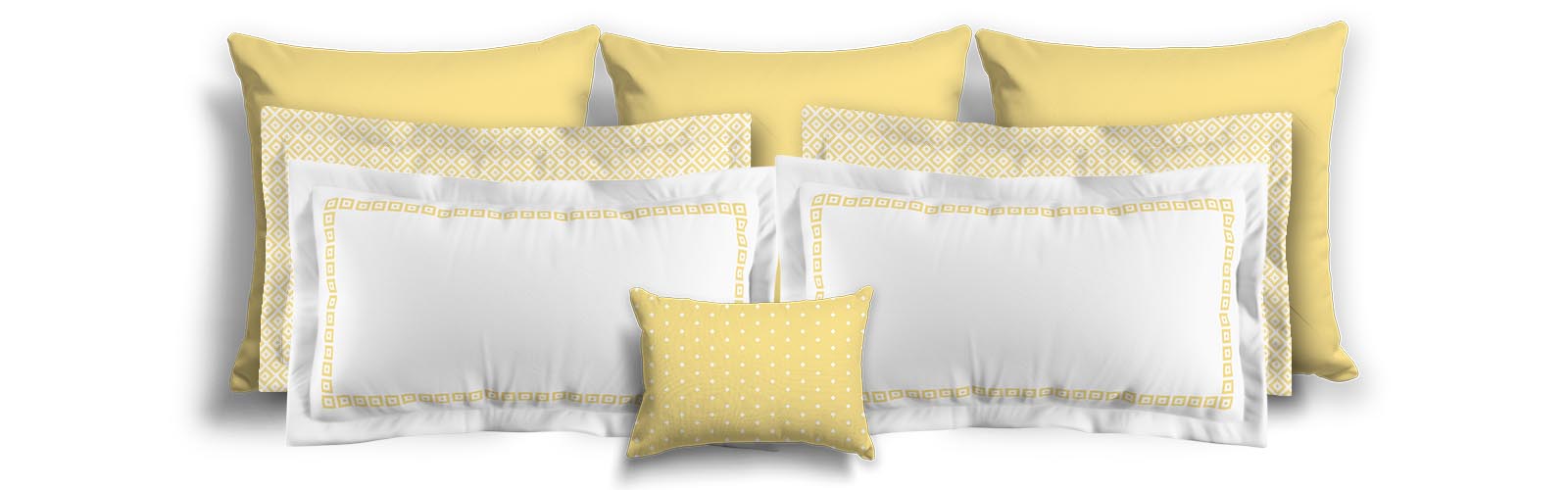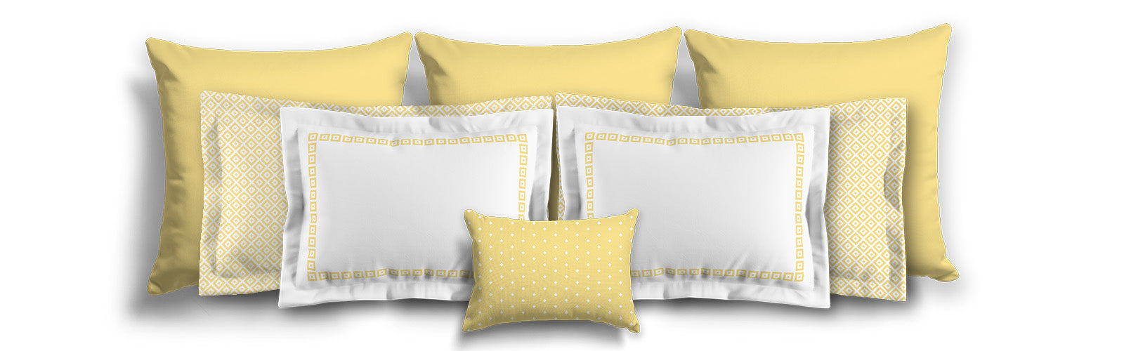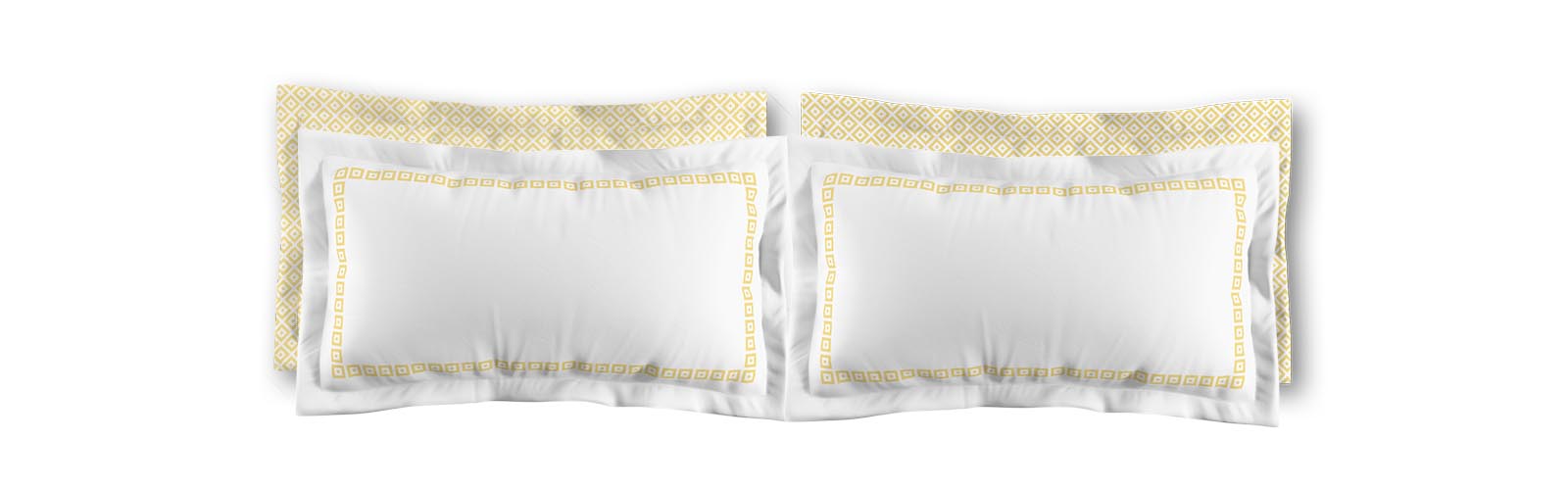 White Microfiber Pillow Sham with Flange, Yellow Repeating Square Motif Print, White Reverse Side | MFSF-1381-122