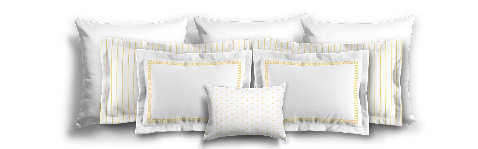 White Microfiber Sham with Flange, Yellow Stripes on Front, White Reverse Side | MFSF-1381-151