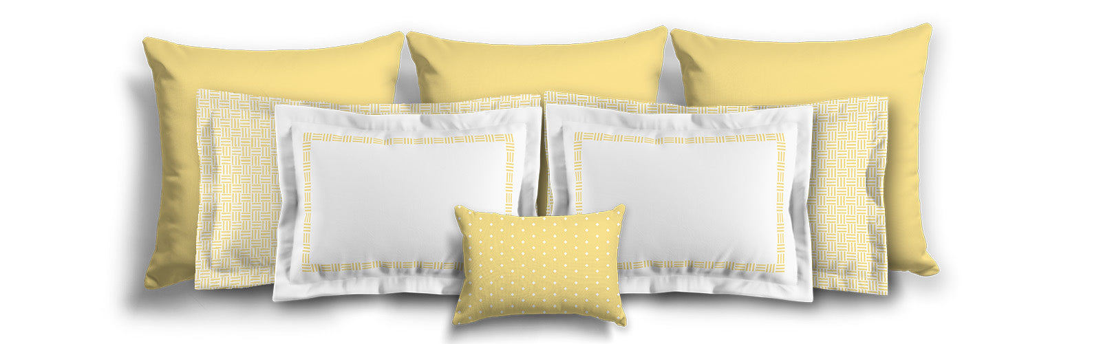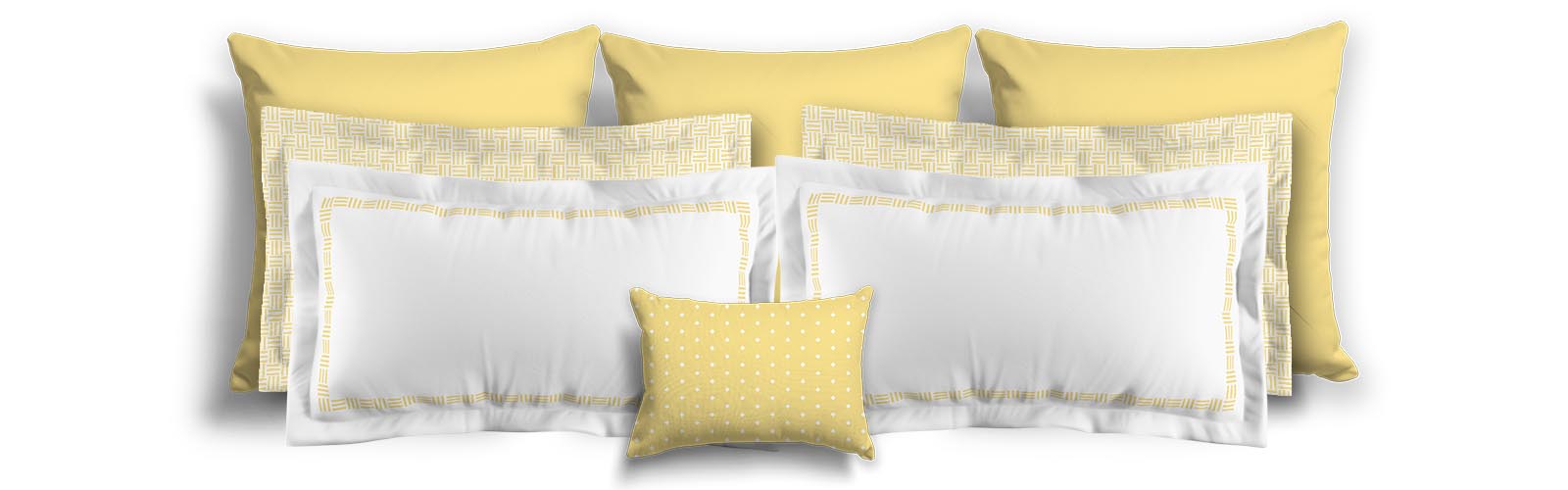 White Microfiber Pillow Sham with Flange, Yellow Single Weave Motif Print, White Reverse Side | MFSF-1381-142