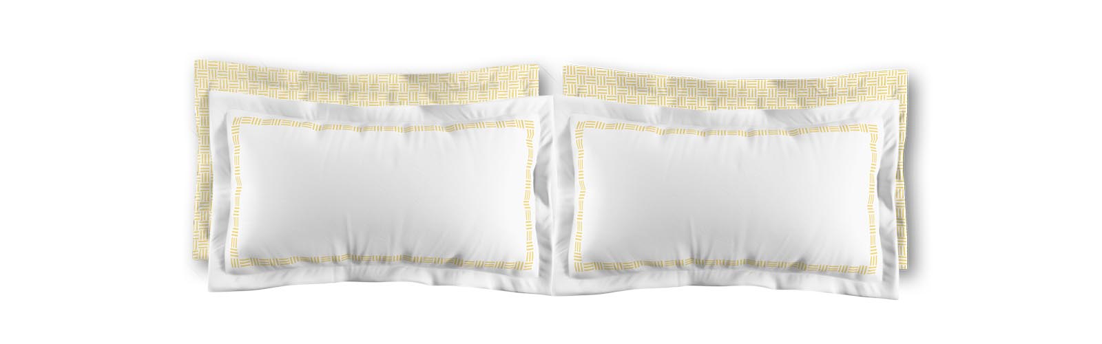 White Microfiber Pillow Sham with Flange, Yellow Single Weave Motif Print, Classic Border, White Reverse Side | MFSF-1381-141