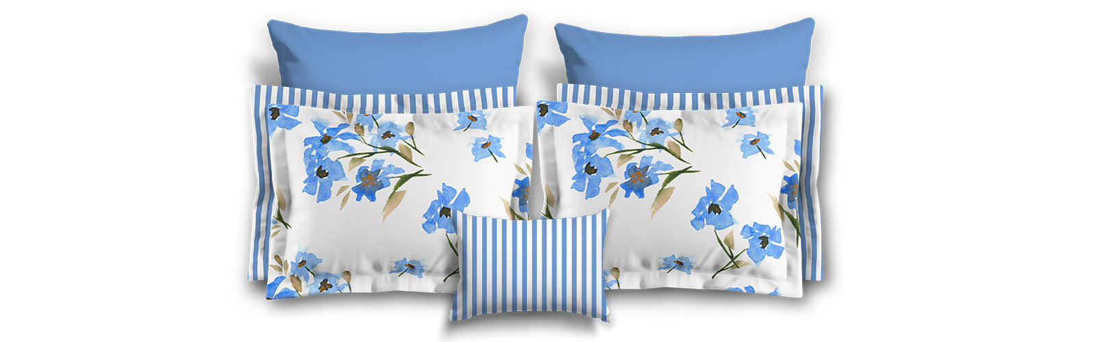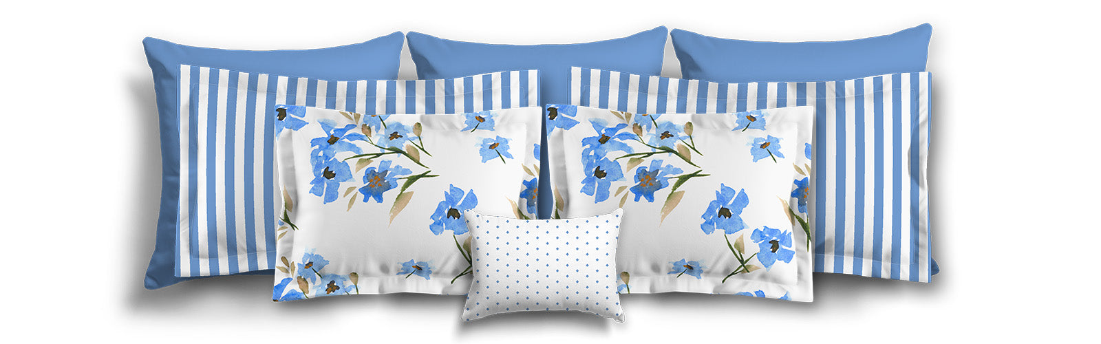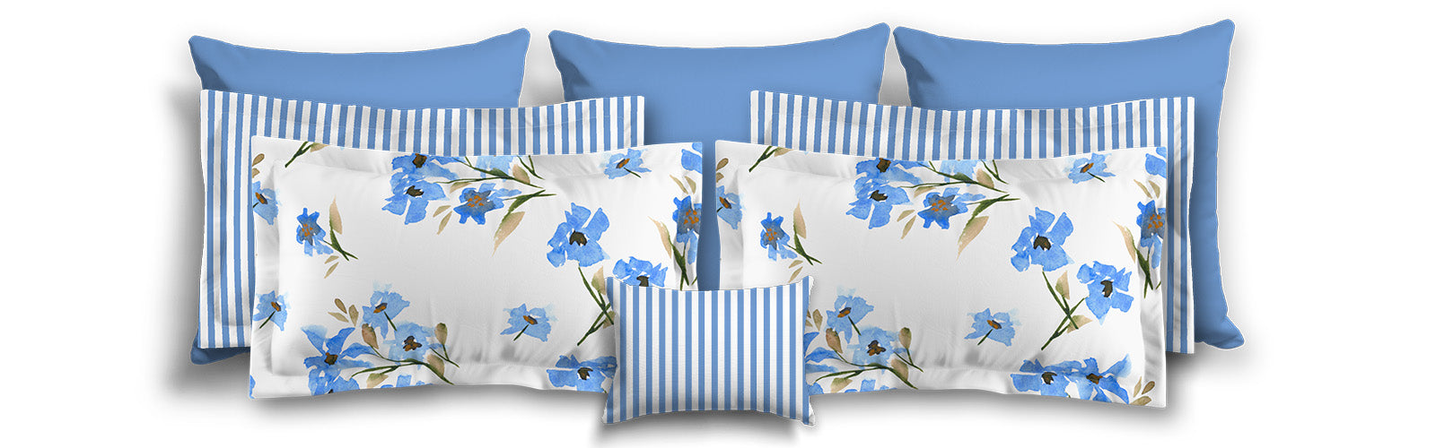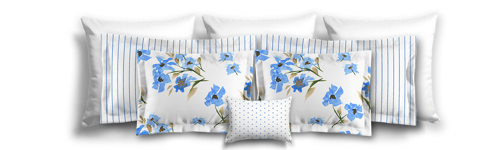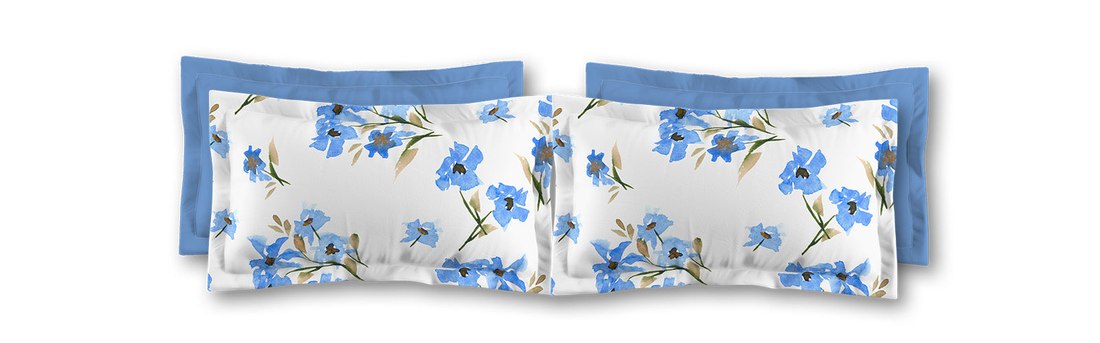 White Microfiber Pillow Sham with Flange, Large Blue Floral Print | MFSF-1404