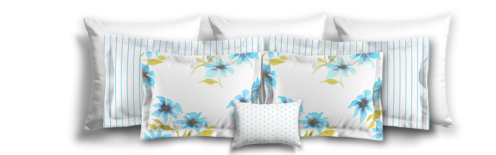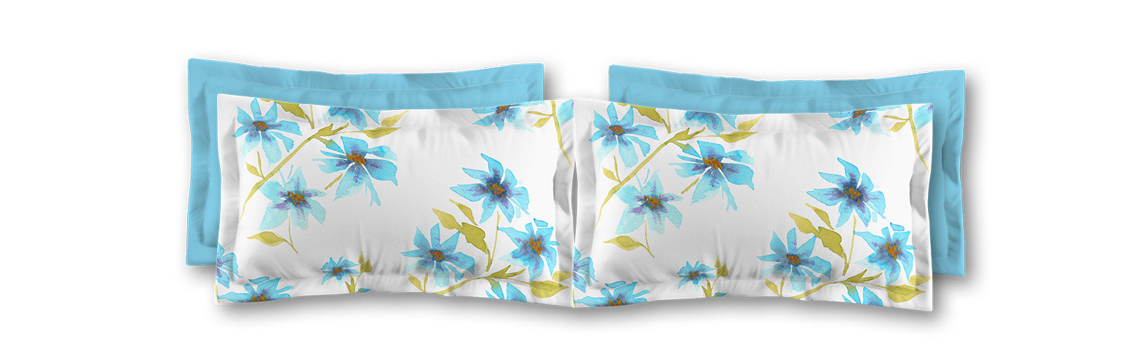 White Microfiber Pillow Sham with Flange, Large Blue Floral Print | MFSF-1434