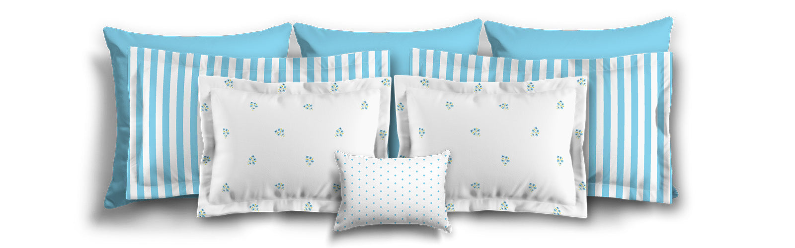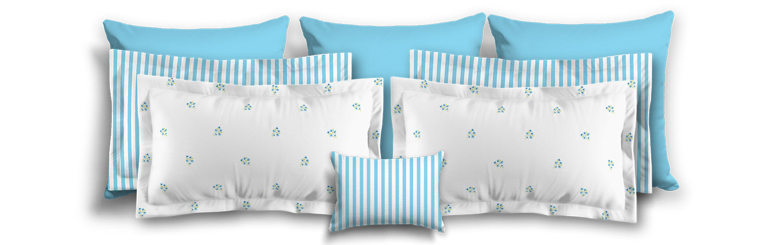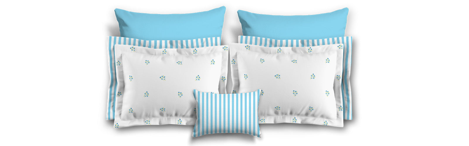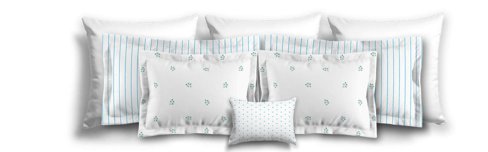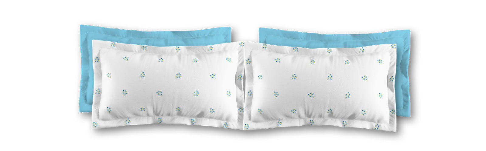 White Microfiber Pillow Sham with Flange, Small Blue Floral Pattern | MFSF-1436