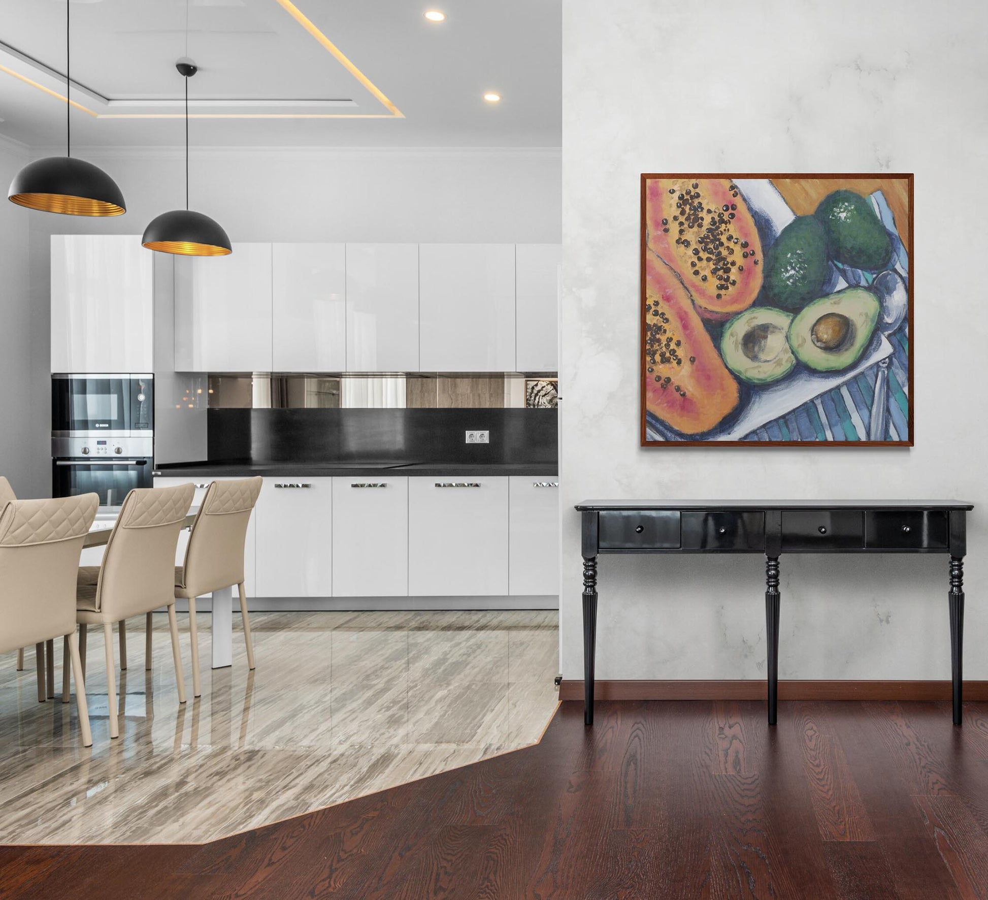 Fine Art Canvas Print - 24x24 30x30 36x36 40x40 42x42 44x44 48x48 inches | Papaya & Avocados in Acrylic, CPS-2105