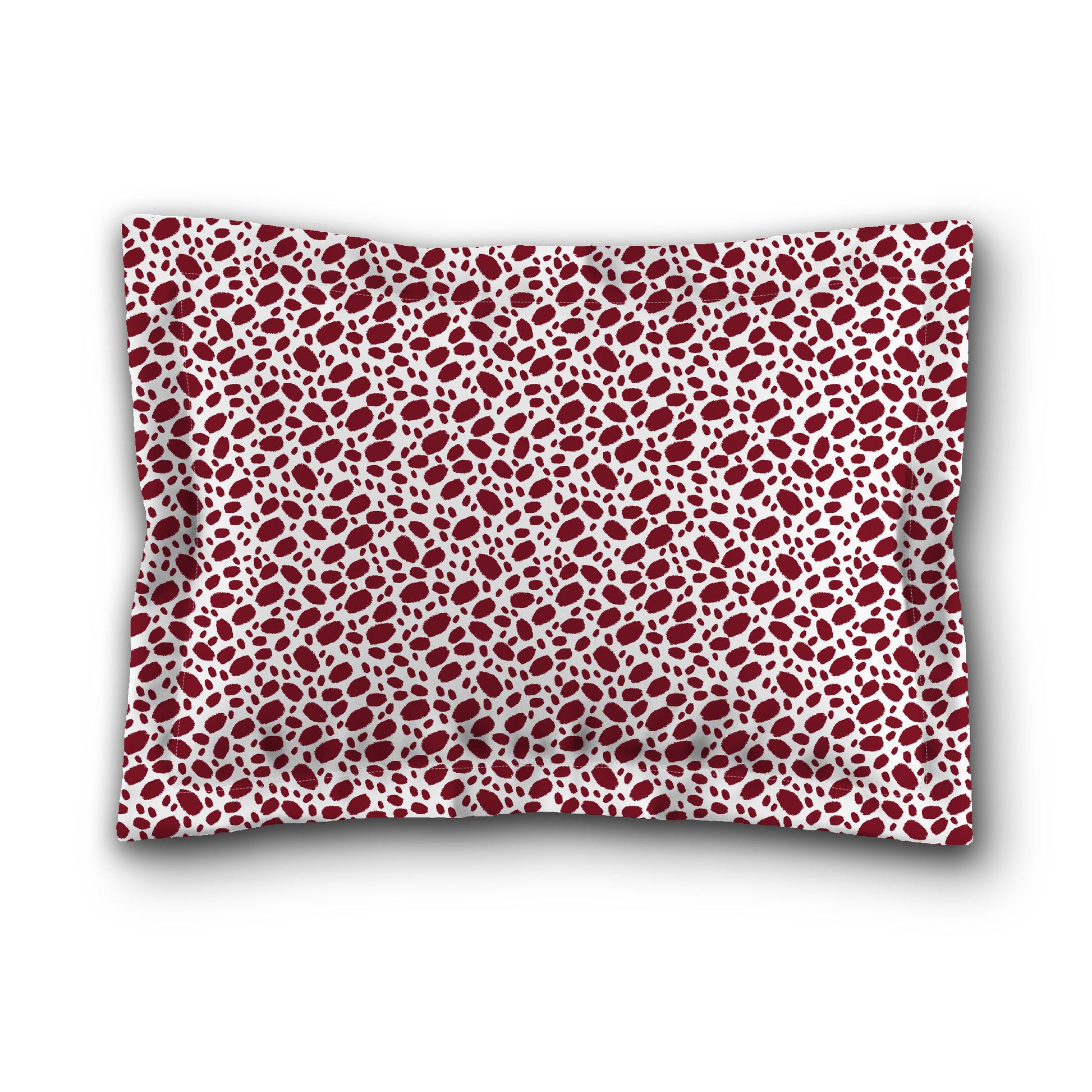 White Microfiber Pillow Sham with Flange, Burgundy Red Hand-painted Dab Motif Print, White Reverse Side | MFSF-1281-092